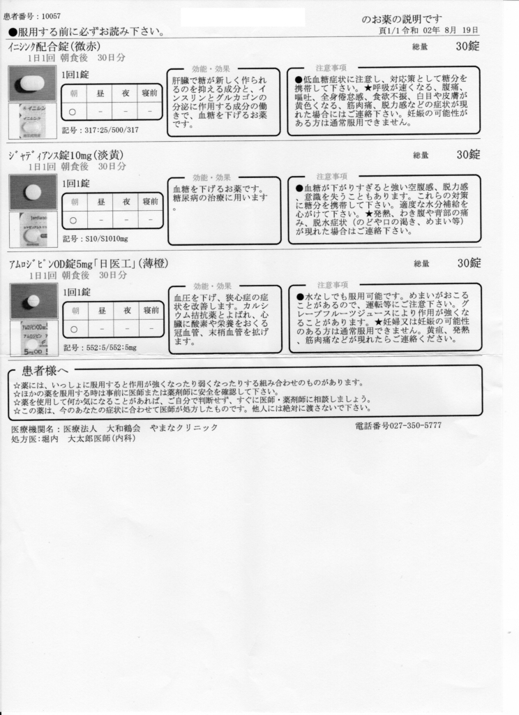 【服用している薬】(全て朝食後です。)